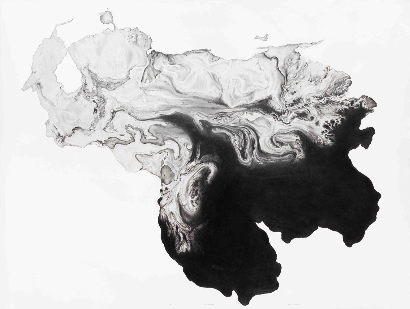 En représentant la matière (dont les métaphores descriptives sont lave, écoulement, écluse, labyrinthe, effluve, flux, fluidité, viscosité, marbrure etc.) pour oublier le dessin, Illarramendi joue précisément avec les normes et les protocoles de la perception, de la représentation et de l’évaluation du dessin. Et avec le dessin, de l’image. Certes, le dessin précède ici toute image et en un sens la rend possible mais tout se passe comme si dessin et image se contrariaient sans cesse, comme si dessin et image alternaient leurs réalités. D’un point de vue perceptif d’abord, parce que la virtuosité technique du dessin laisse penser qu’il s’agit d’une image – signe reproductible et technique, photographique ou numérique. D’un point de vue conceptuel ensuite, parce que l’image disparaît au moment où le dessin apparaît et vice-versa. Si « la théorie traverse l’objet » et que la forme elle-même « traverse la silhouette » comme il le dit, c’est encore la réalisation qui donne l’idée et c’est à travers elle que la représentation – sensible ou abstraite – la mémoire et son imagination sont déconstruites. C’est pourquoi aussi Raul Illarramendi, bien que travaillant le concept, n’est pas un artiste conceptuel : simplement son dessin archive une ré-flexion (répétition et flexion) de l’image.